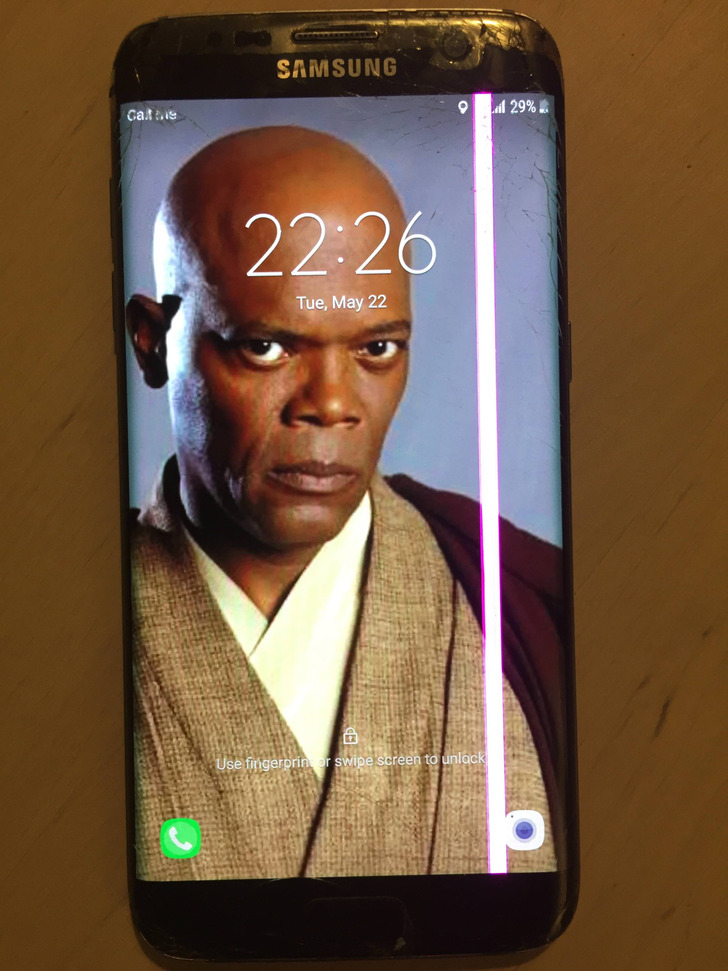 3. Min mobil gick sönder (lila streck på skärmen) men sedan fixade jag det!
