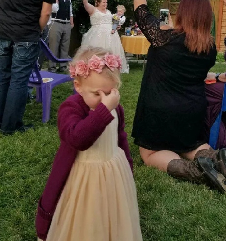 3. En blomsterflicka tröttnade på detta bröllop.