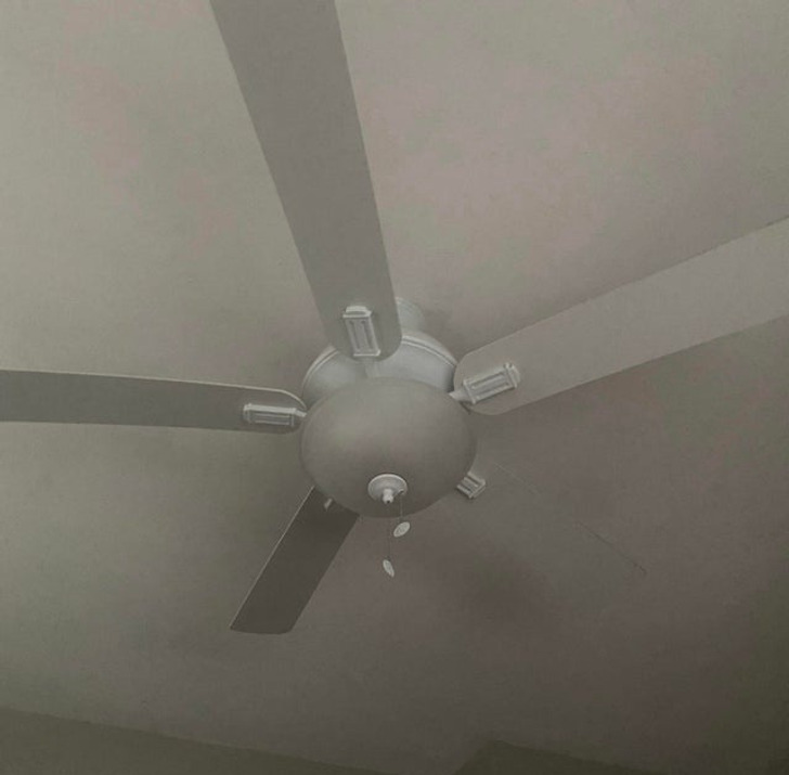 14. Min takfläkt ser ut som att den saknar ett blad i rätt belysning.