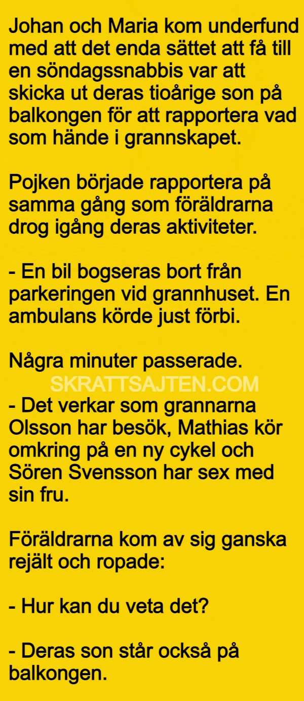 På Skrattsajten.com hittar du massor med noga utvalda skämt och roliga historier som vi tycker är roliga. Skämtet nedan fick oss verkligen att skratta gott, hoppas du också tycker att det är roligt.